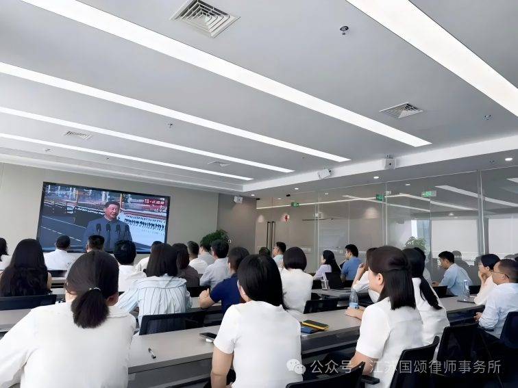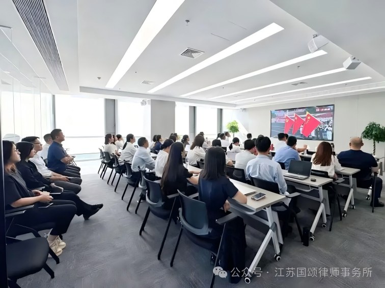 为铭记历史、缅怀先烈,弘扬伟大爱国主义精神和抗战精神,江苏国颂律师事务所积极响应号召,党支部组织党员律师、执业律师、实习律师、行政人员集中收看纪念大会直播,共同见证这一盛大时刻。